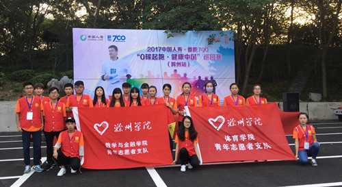 为彰显当代大学生奉献精神,锻炼其社会实践能力,9月15日,金融学子参加了由滁州市人寿保险分公司主办、万象城awc官网登录入口和体育学院承办的2017“要跑700”滁州赛事志愿活动。