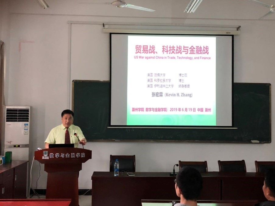 6月19日上午,美国伊利诺州立大学教授张宏霖应邀来院作题为“贸易战、科技战与金融战”的学术讲座。院党委书记李琳和师生聆听了讲座。讲座由金融工程系主任张海永主持。