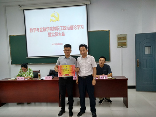 6月26日,万象城官网在数学楼报告厅召开教职工政治理论学习暨党员大会。院领导翟明清、李琳、张玲、王圣祥和全体教职工参加了会议。会议由院党委副书记、院长翟明清主持。