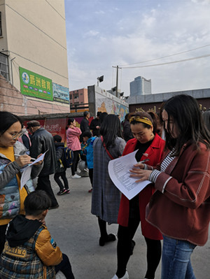 10日,实践团队就实践活动主题开展讨论。分析出目前滁州市早教机构数量并不多,说明市场开发力度不够,潜在需求量很大,为此团队成员制定了关于早教机构的调查问卷,调查滁州市居民对早教机构的看法。11日至12该团队在紫薇小学和会峰小学发放调查问卷,在问卷调查中向居民询问对早教机构了解程度以及态度,并通过采访多位市民了解到其对发展滁州市托育机构的建议。随后,小组成员根据调查问卷整理出有效数据。