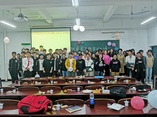 活动伊始,陈莹用PPT的形式让同学们了解了近期“三会两制一课”制度的有关内容,并对如何“夯实基础团务,提升基层组织力”进行了提问,同学们积极表达自己的见解与看法。活动期间,团支书宣布了最新入团学生名单,并对该同学进行了新生团员意识教育工作,增强对共青团的认识。随后,团支书还组织同学们进行了才艺表演,知识竞答等活动,使活动气氛推向高潮,也让同学们进一步了解彼此。最后,全体同学合影留念。