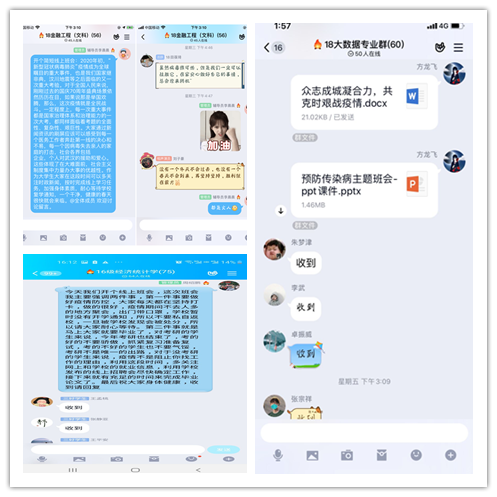 领会文件精神,把握疫情动态。万象城官网各团支部利用线上网络交流平台为依托,通过班主任、辅导员班级线上组织发起,使用QQ、微信、易班等社交软件传达发布《关于立即行动起来投身新型冠状病毒感染肺炎防控工作的通知》、《关于坚持党的领导,全团动员,在防控疫情阻击战中充分发挥共青团生力军和突击队作用的通知》等文件和全国每日疫情动态新闻,要求学生党员、班干部带头学习,各班学生主动学习,认真学习领会文件精神,掌握最新疫情动态,自觉提高疫情防护意识。