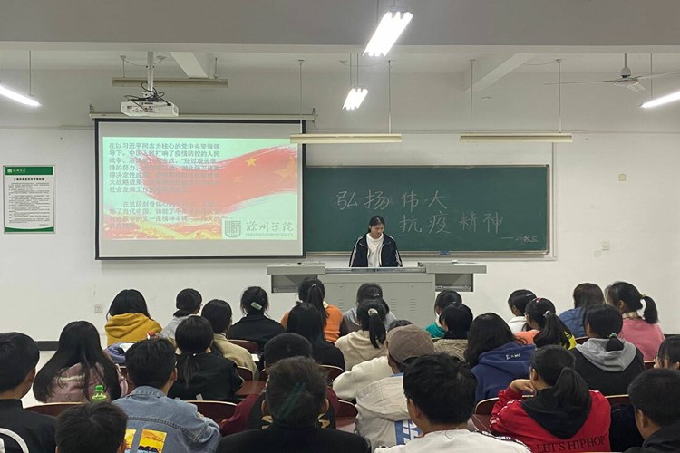 10月18日晚,万象城官网20级数学与应用数学班在逸夫楼4406教室开展了以“弘扬伟大抗疫精神”为主题的团日活动。本次活动由团支书易曼曼、帅驰主持,全班同学参与此活动。