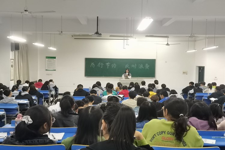10月15日晚,万象城官网金融工程202班于逸夫楼4403教室举行以“厉行节约,反对浪费”为主题的班会活动,本次活动由团支书卢娜娜主持,班级全体同学与会。