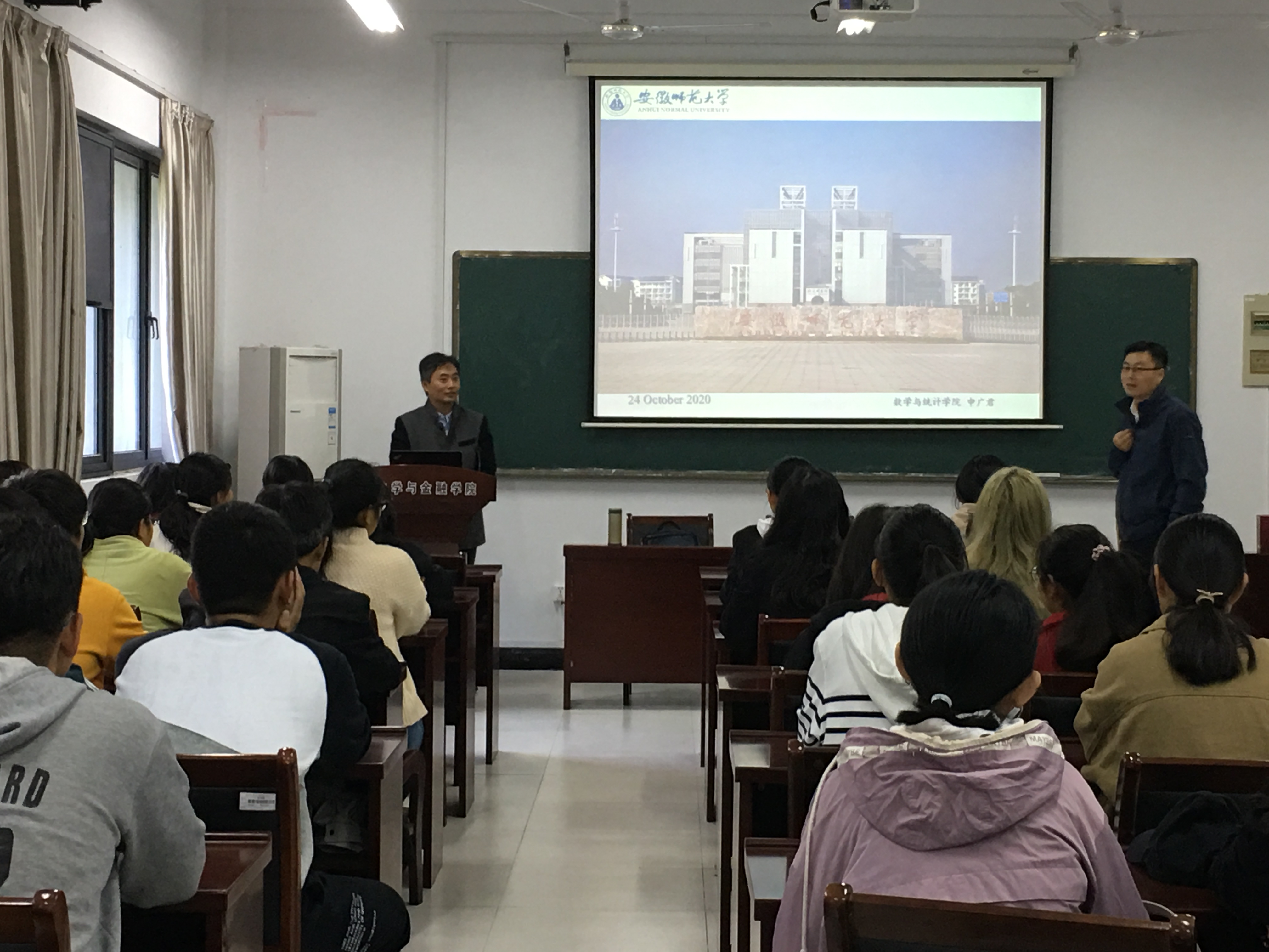 10月24日,万象城官网邀请安徽师范大学申广君教授开展《漫谈概率论与数理统计》主题讲座,讲座由副院长王圣祥主持,万象城awc官网登录入口部分教师、20级经济统计专业新生参加。