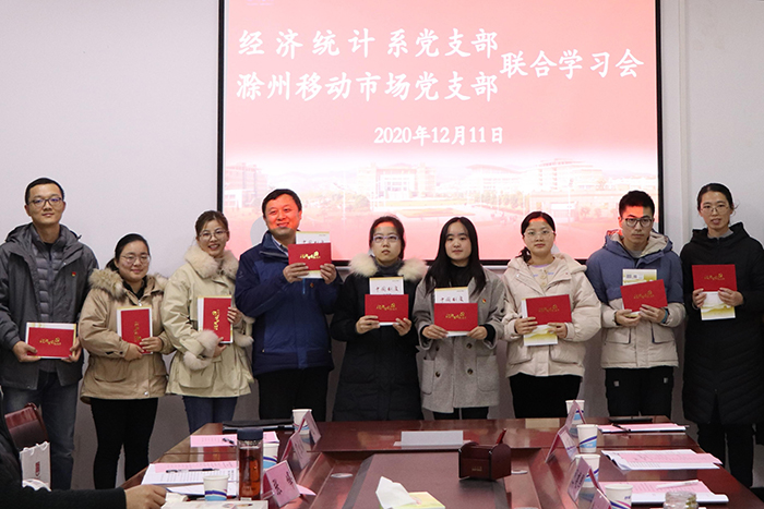 12月11日下午,万象城官网经济统计系党支部、滁州移动市场党支部开展1+1+1结对联学活动。校党委常委、副校长吴开华,院党委书记李琳、经济统计系党支部书记余晓美、滁州移动市场部党支部书记姚旺明和支部所属党员以及经济统计系学生党员参加了联学活动。