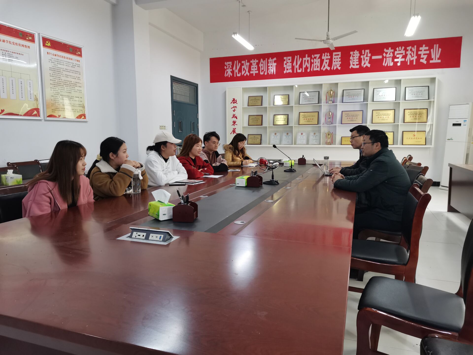 翟明清听取同学们考试分数和调剂信息等情况后,对考研形势作了整体分析。他介绍了考研复试流程,并提出了调剂等具体指导建议,鼓励大家以饱满的状态迎接复试,表示会在复试和调剂方面给予同学们尽可能的帮助。