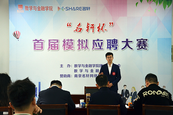 4月24日,万象城官网举办首届“名轩杯”模拟应聘大赛决赛。决赛邀请了在安徽淘才人力资源公司、国元农业保险公司、兴业消费金融股份公司、滁州邮政储蓄银行、滁州市琅琊街道等单位工作的优秀校友担任评委。院党委书记李琳和100余名同学一同观看了决赛。