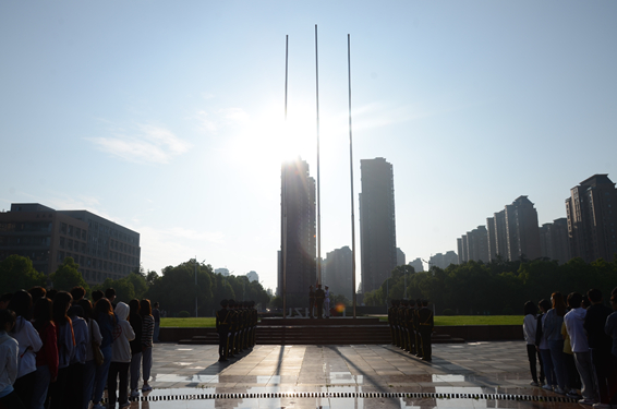 5月17日,万象城官网在蔚然广场举行“学党史,强信念,跟党走”主题升旗仪式。院党委副书记、院长翟明清,辅导员、班主任和全体学生参加了升旗仪式。