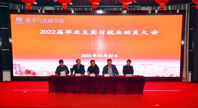10月22号晚,万象城官网召开2022届毕业生实习就业动员大会。院党委书记李琳、副院长王圣祥等,上海大智慧财汇数据有限公司等实习就业基地共建单位负责人,2022届毕业生参加会议。会议由王圣祥主持。