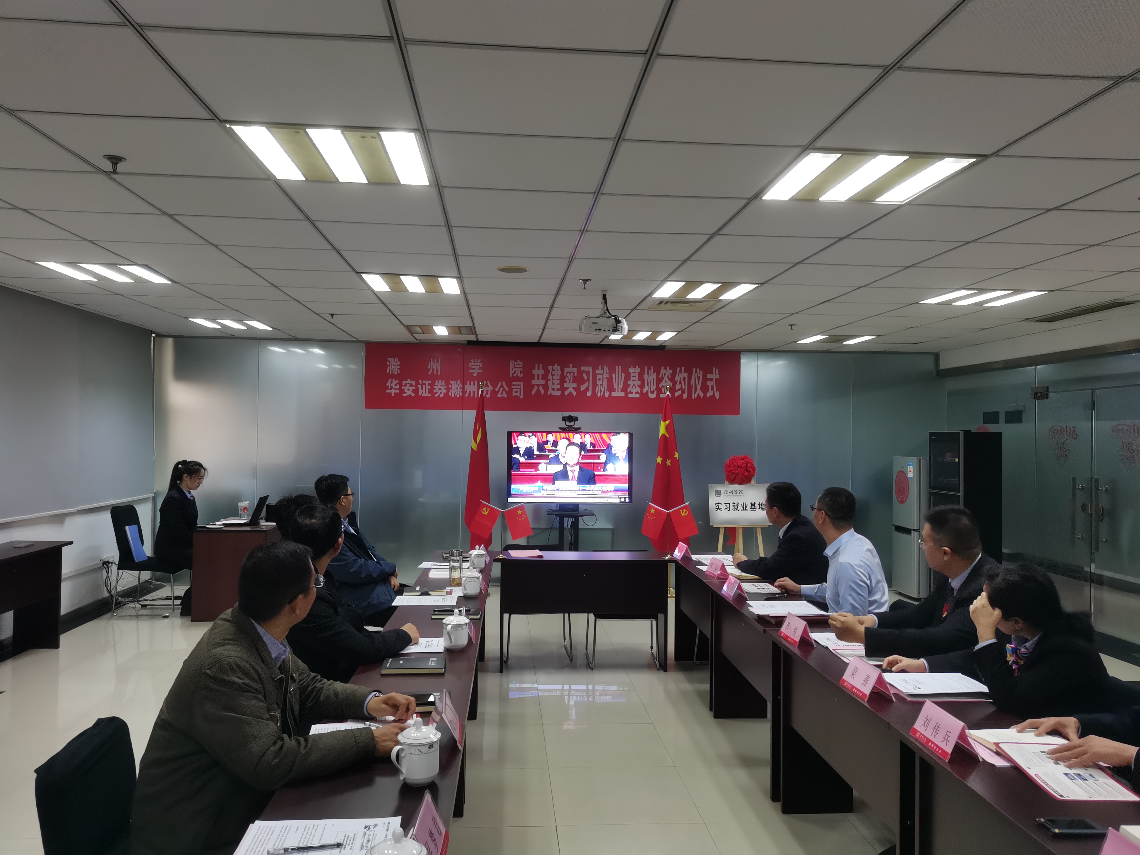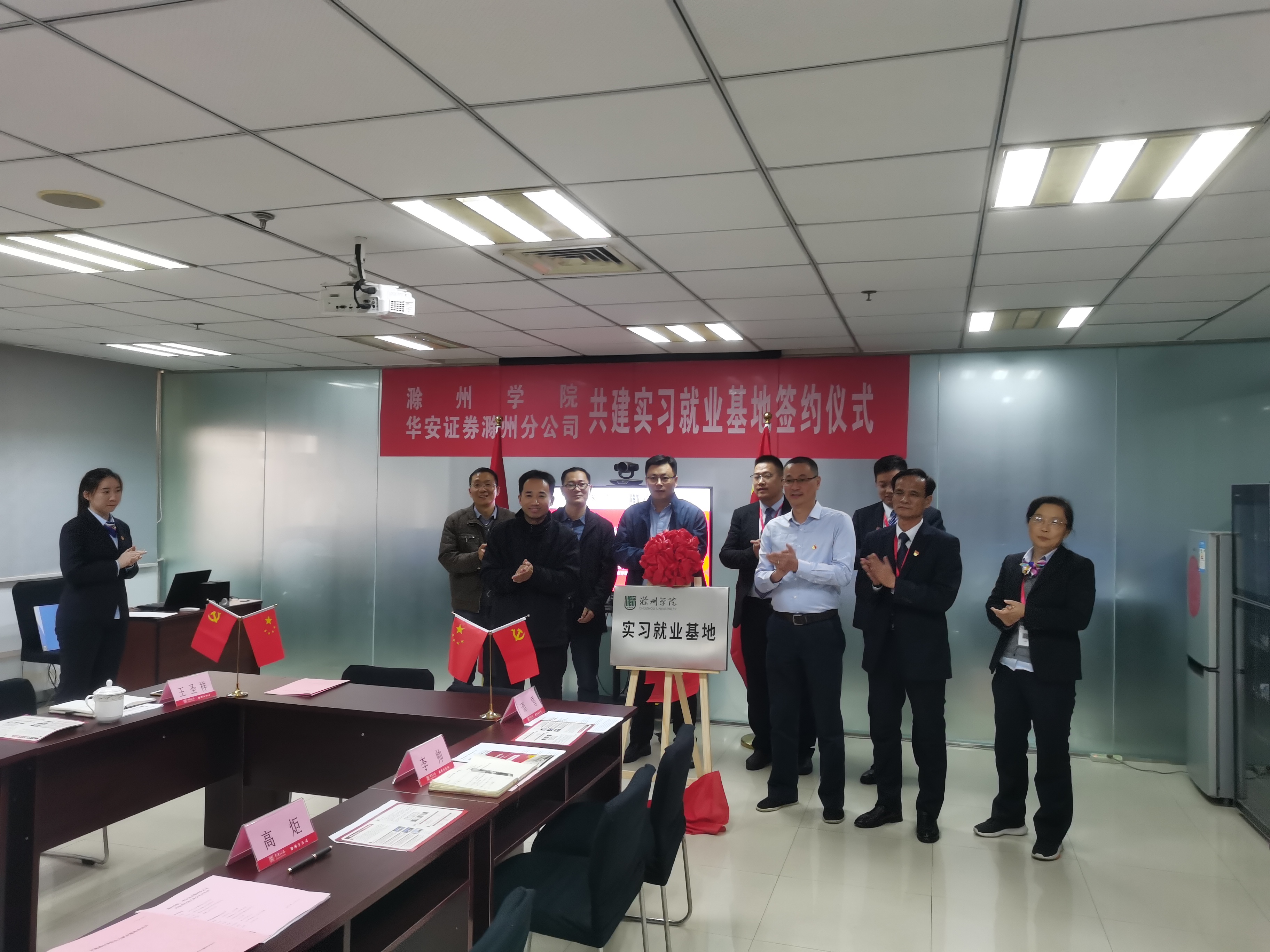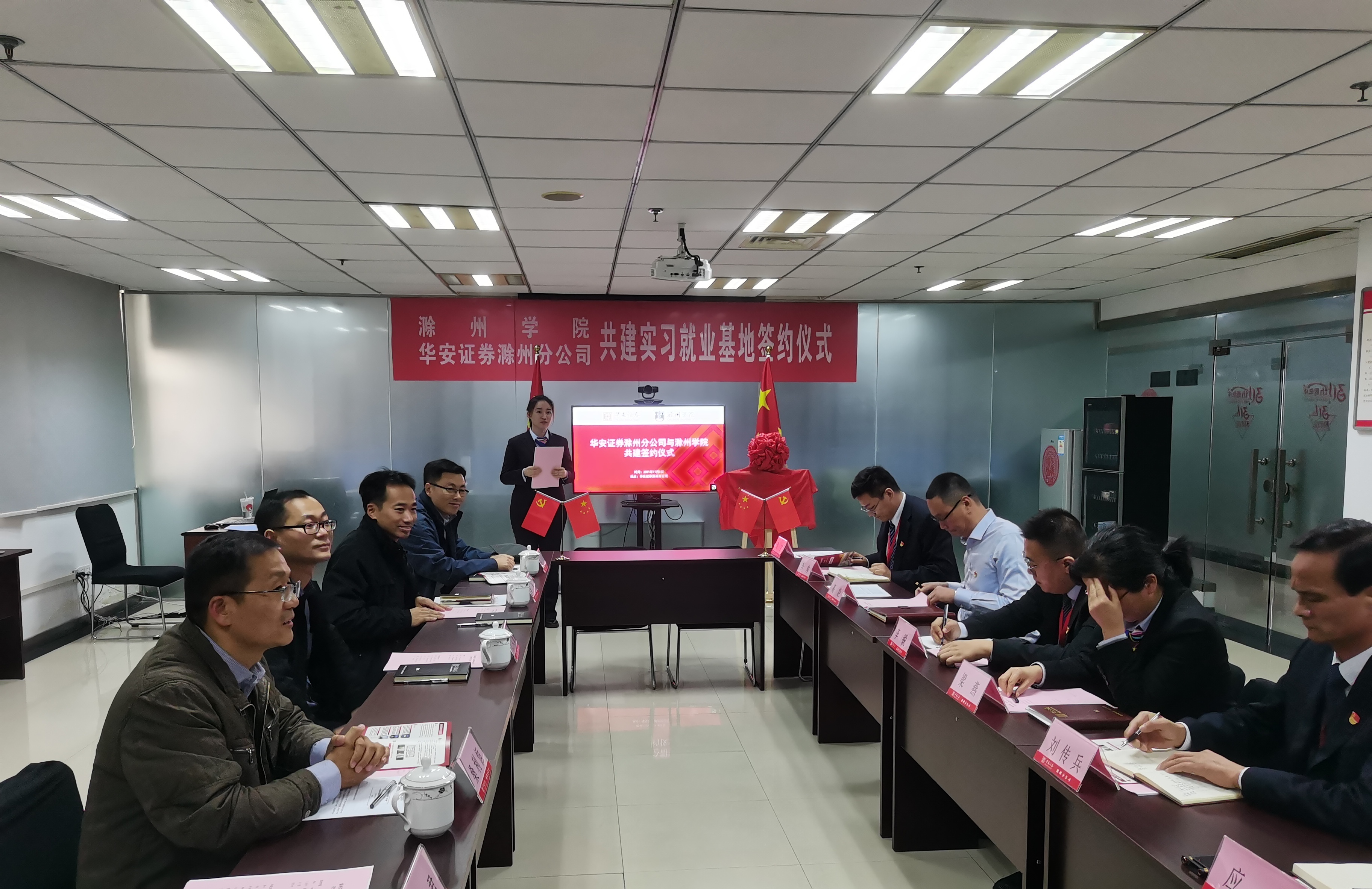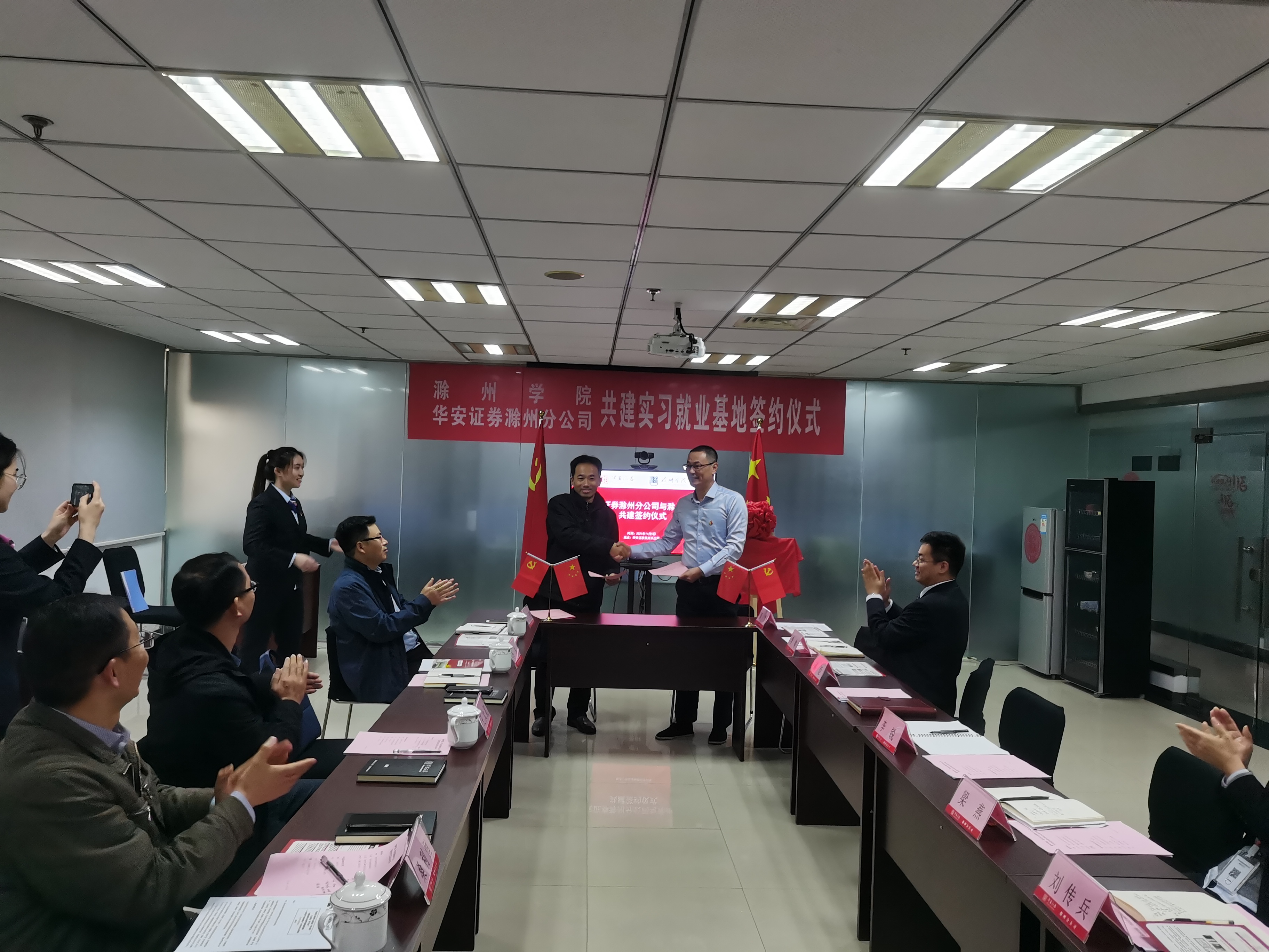 11月5日下午,万象城官网与华安证券滁州分公司共建实习就业基地和党支部签约仪式在华安证券滁州分公司举行。院党委书记李琳、副院长王圣祥、实验室主任王大星、金融工程系主任桑利恒,华安证券滁州分公司党支部书记兼总经理高炬、财富管理中心营销总监李帅等参加签约仪式。